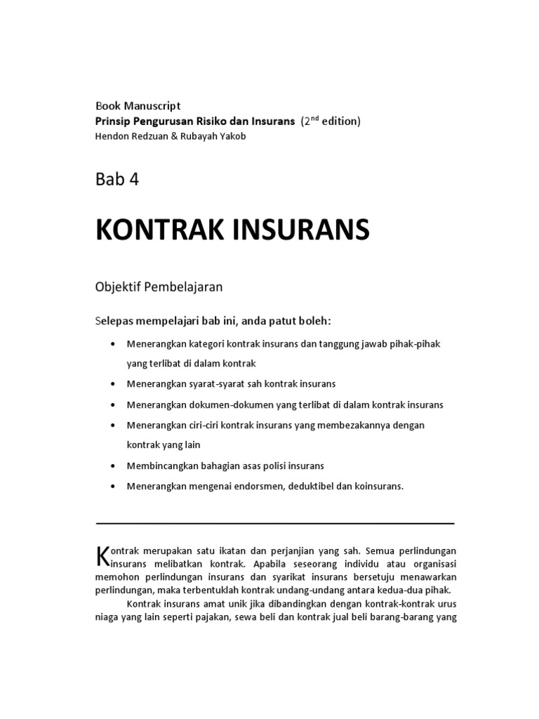 PENGENALAN KEPADA INSURANS Dalam kehidupan seharian seseorang akan menghadapi pelbagai risiko seperti kemalangan kecurian kebakaran dan sebagainya. Perkongsian risiko risiko tidak hanya ditanggung oleh syarikat insurans. Insuran ditakrifkan sebagai peralihan samarata risiko kemungkinan kerugian daripada satu entiti kepada yang lain sebagai pertukaran untuk bayaran dan tugas bagi penjagaan dan difikirkan sebagai satu jaminan dan diketahui kerugian yang kecil untuk mengelakkan satu kerugian yang besar kemun.